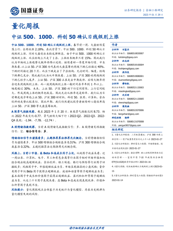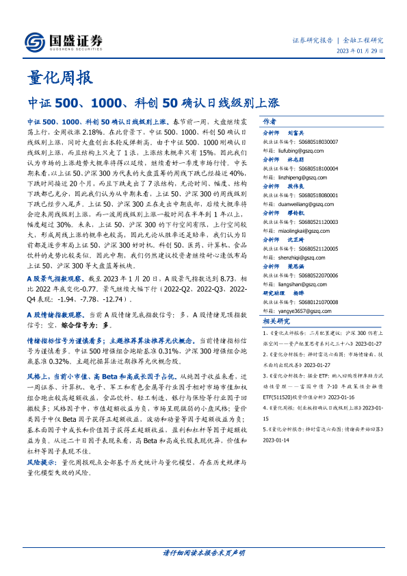 【国盛证券】【20230129】量化周报:中证500、1000、科创50确认日线级别上涨-24页