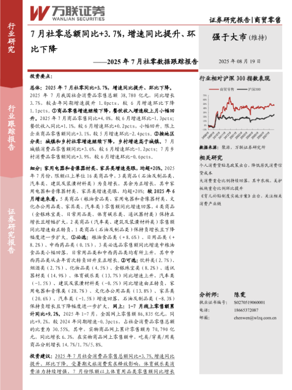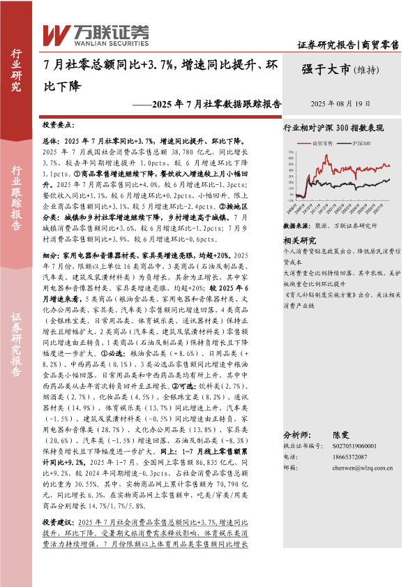 【万联证券】【202508】7月社零总额同比+3.7%,增速同比提升、环比下降-12页