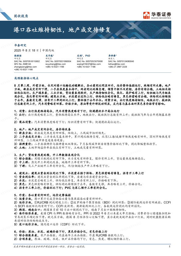 【华泰证券】【202508】固收视角:港口吞吐维持韧性,地产成交待修复-14页