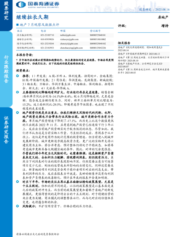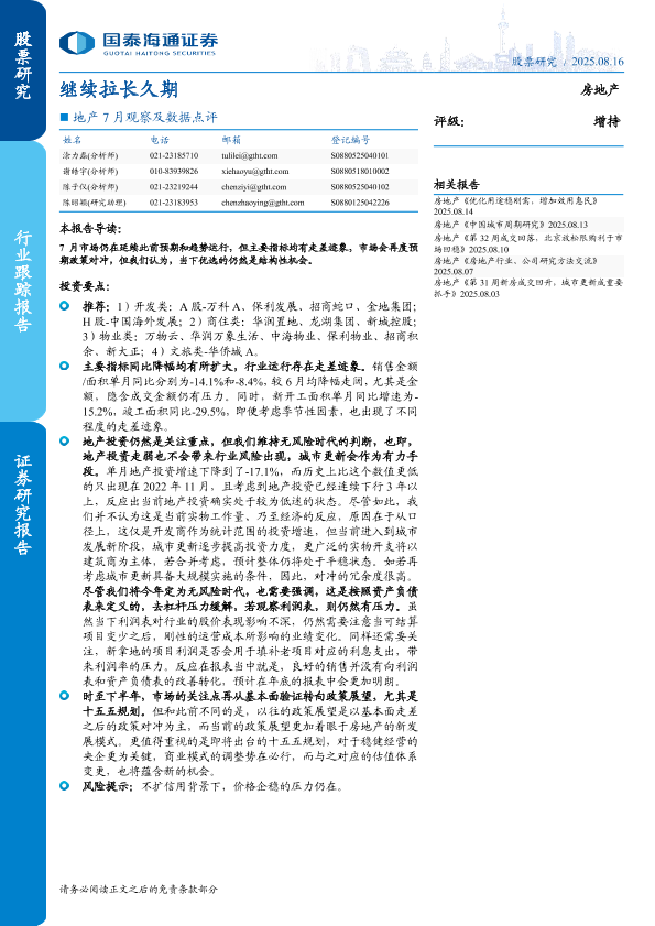 【国泰海通证券】【202508】地产行业7月观察及数据点评:继续拉长久期-11页