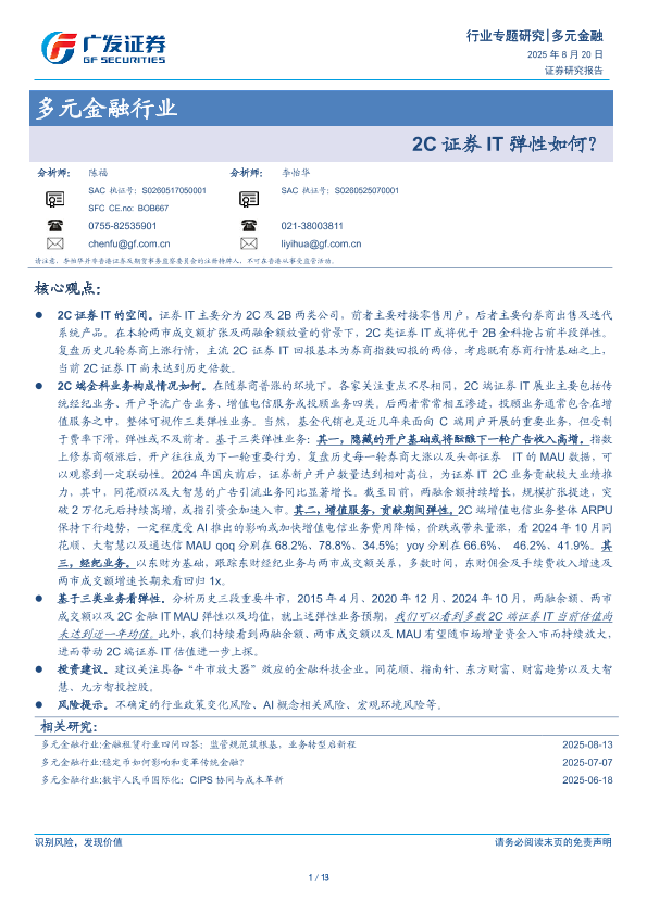 【广发证券】【202508】多元金融行业:2C证券IT弹性如何?-13页