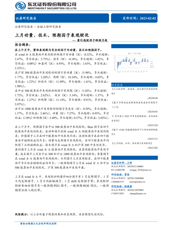 【东北证券】【20230202】量化选股因子跟踪月报:上月动量、技术、预期因子表现较优-40页
