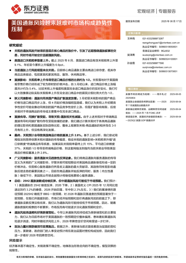 【东方证券】【202508】美国通胀风险越来越难对市场构成趋势性压制-18页