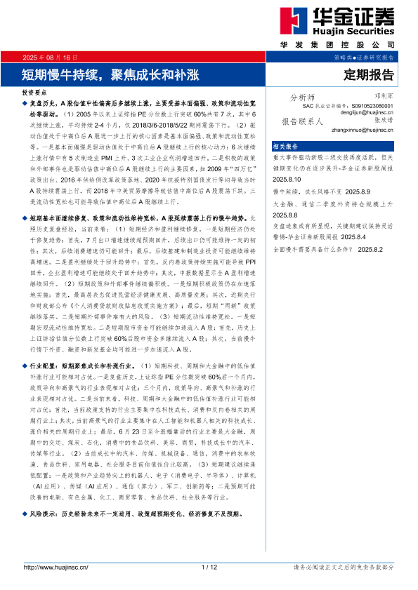 【华金证券】【202508】短期慢牛持续,聚焦成长和补涨-12页