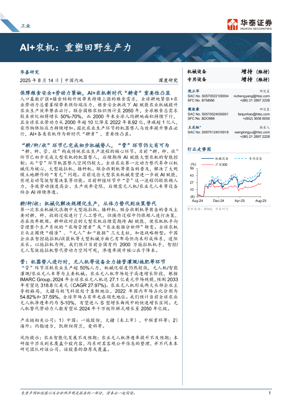 【华泰证券】【202508】AI+农机:重塑田野生产力-22页