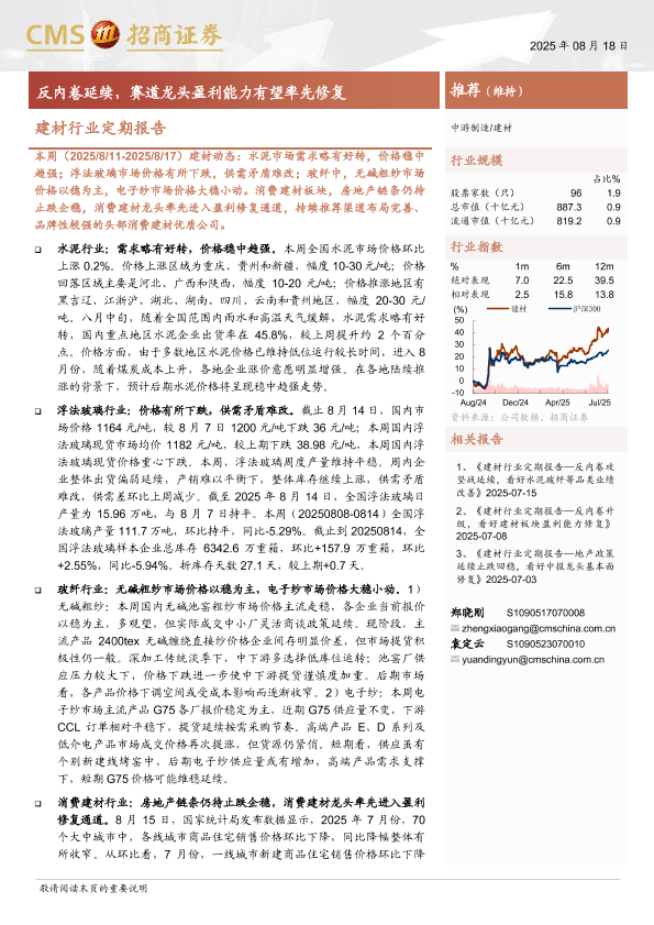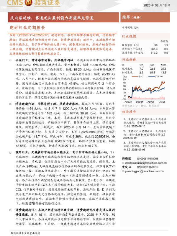 【海通证券】【202508】建材行业定期报告:反内卷延续,赛道龙头盈利能力有望率先修复-25页