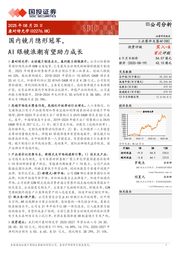 【国投证券】【202508】国内镜片隐形冠军,AI眼镜浪潮有望助力成长-39页
