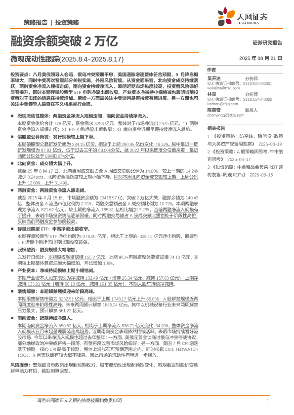 【天风证券】【202508】微观流动性跟踪:融资余额突破2万亿-14页