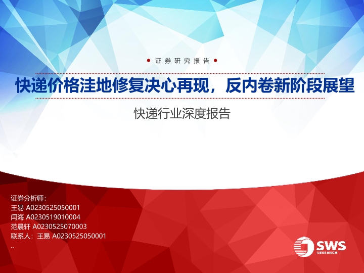 【申万宏源】【202408】快递价格洼地修复决心再现,反内卷新阶段展望-30页