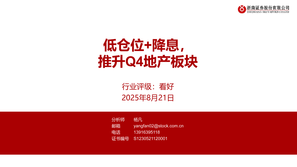 【浙商证券】【202508】低仓位+降息,推升Q4地产板块-27页