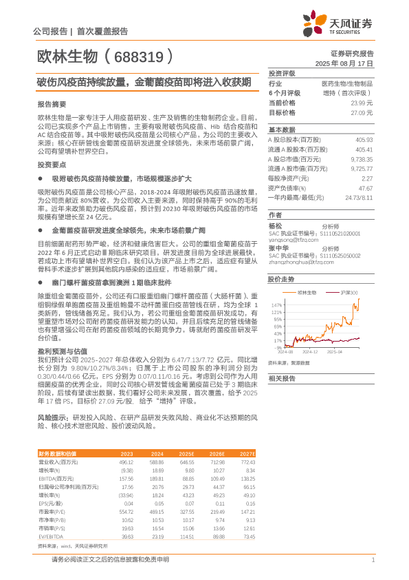 【天风证券】【202508】欧林生物:破伤风疫苗持续放量,金葡菌疫苗即将进入收获期-19页