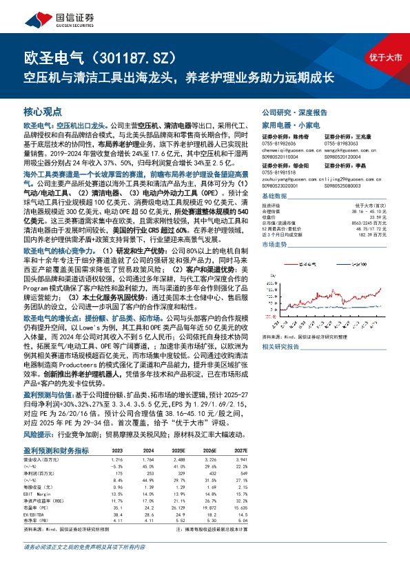 【国信证券】【202508】欧圣电气(301187)空压机与清洁工具出海龙头,养老护理业务助力远期成长-36页