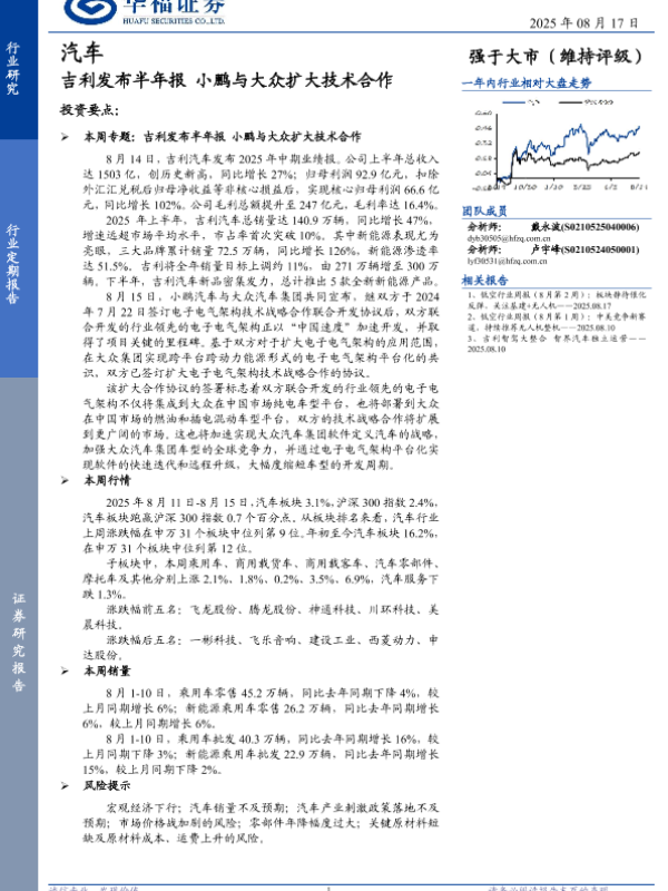 【华福证券】【202508】吉利发布半年报,小鹏与大众扩大技术合作-12页
