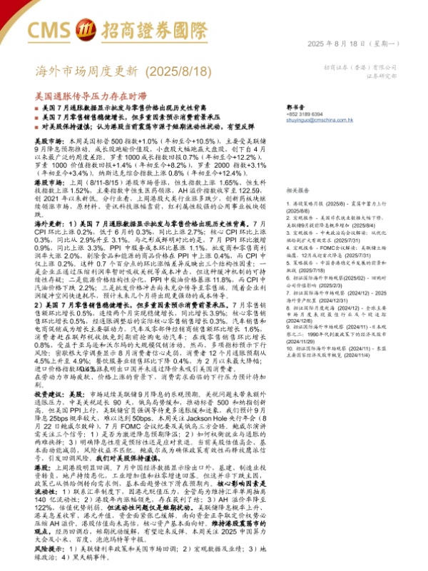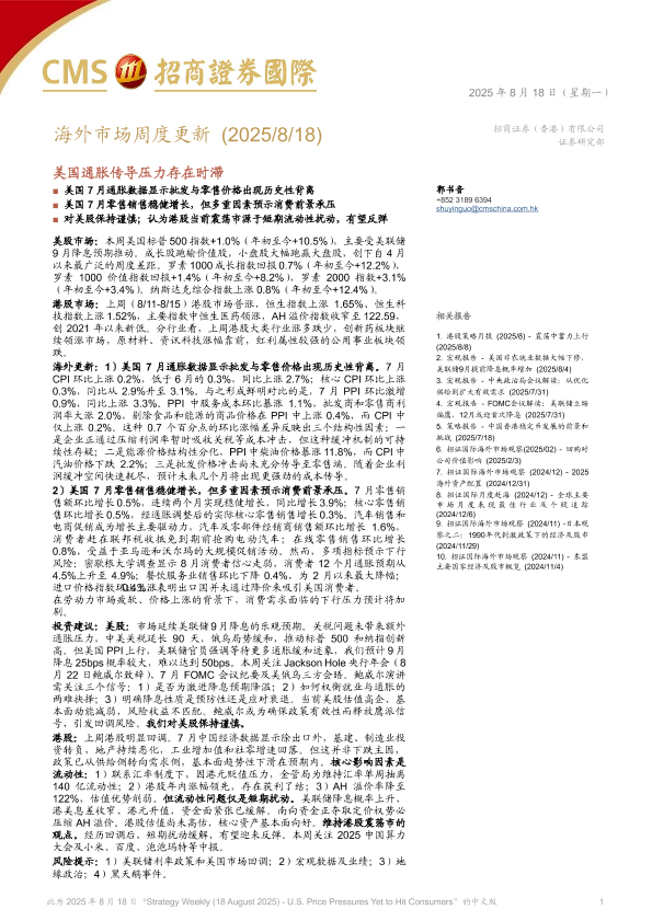 【招商证券国际】【202508】海外市场周度更新 美国通胀传导压力存在时滞-19页