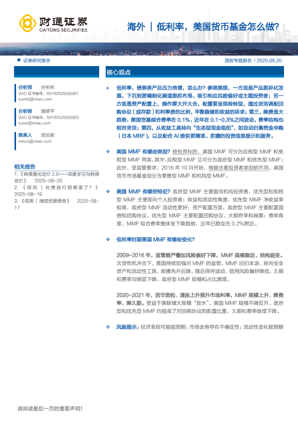 【财通证券】【202508】海外|低利率,美国货币基金怎么做?-20页