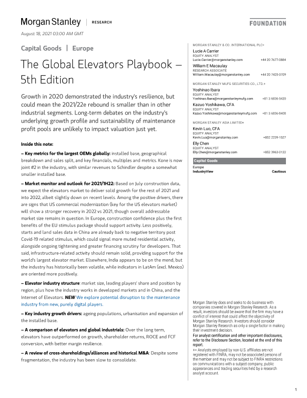 【Morgan Stanley】【20210818】摩根士丹利-欧洲投资策略-全球电梯手册-45页