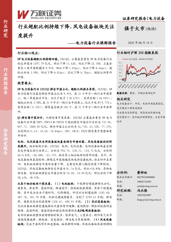 【万联证券】【202508】行业超配比例持续下降,风电设备板块关注度提升-10页