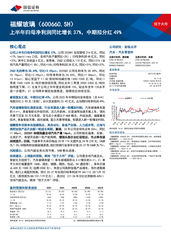 【国信证券】【202508】福耀玻璃(600660.SH)上半年归母净利润同比增长 37%,中期拟分红 49%-12页