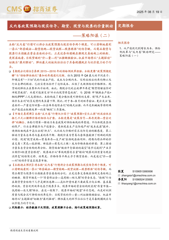 【海通证券】【202508】策略阳谋(二):反内卷政策预期与现实传导、期货、现货与股票的价量联动-19页