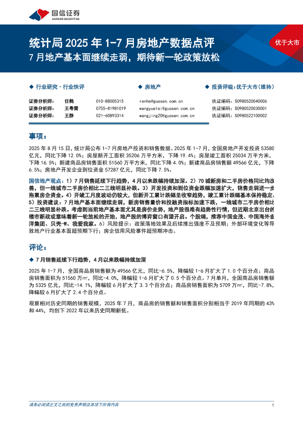 【国信证券】【202508】统计局2025年1-7月房地产行业数据点评:7月地产基本面继续走弱,期待新一轮政策放松-11页