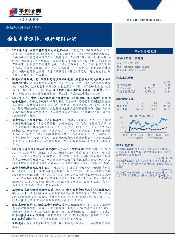 【华创证券】【202508】金融和理财市场8月报:储蓄走势逆转,银行理财分流-21页