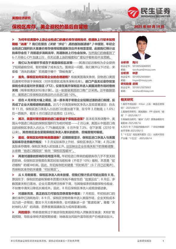 【民生证券】【202508】美国经济研究:保税区库存,美企避税的最后自留地-14页