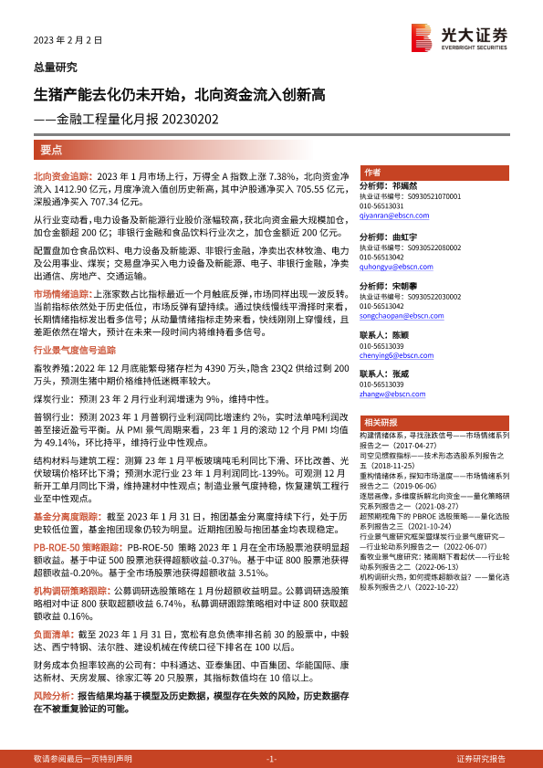 【光大证券】【20230202】金融工程量化月报:生猪产能去化仍未开始,北向资金流入创新高-22页