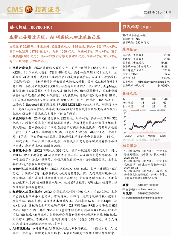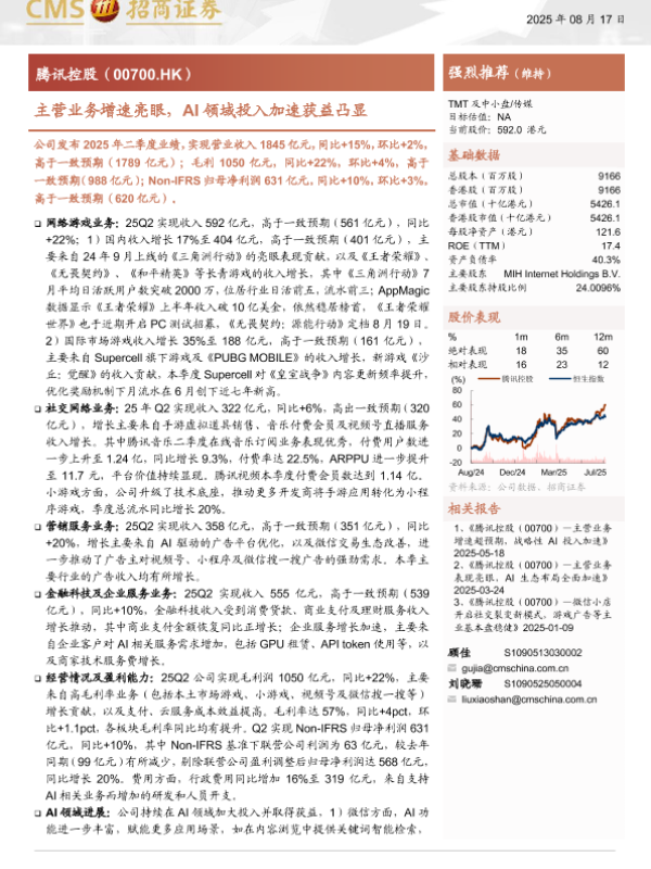 投资评级 人工智能 财报分析 网络游戏 腾讯控股