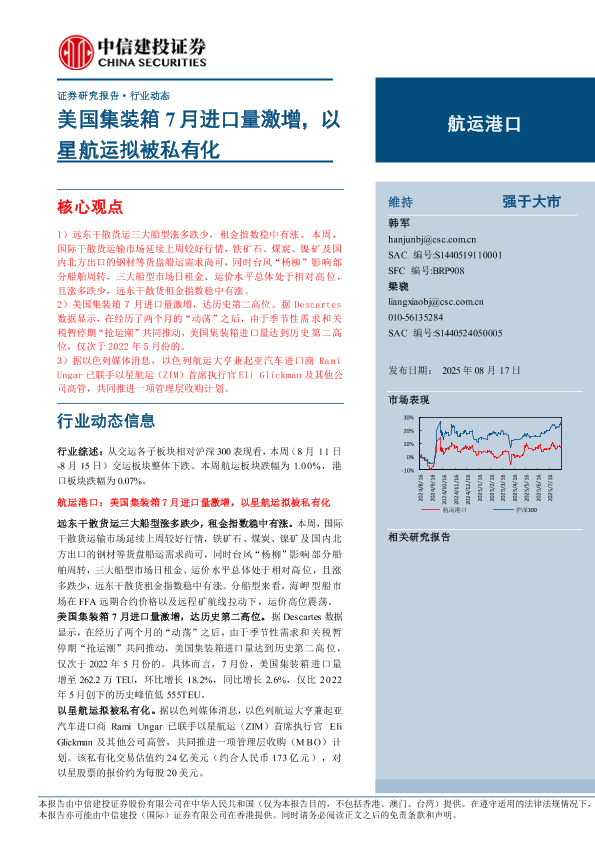 【中信建投证券】【202508】美国集装箱7月进口量激增,以星航运拟被私有化-20页