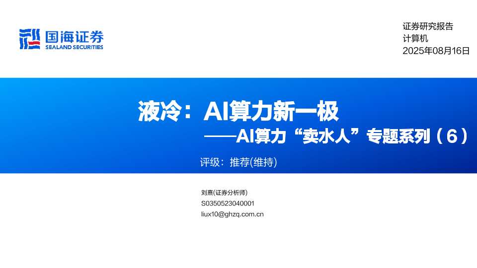 【国海证券】【202508】液冷:AI算力新一极-37页