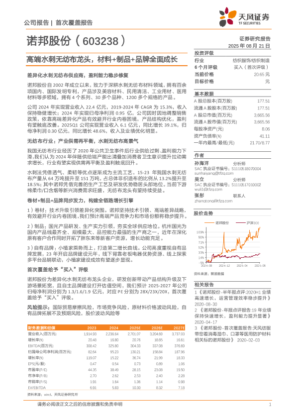 【天风证券】【202508】诺邦股份(603238)高端水刺无纺布龙头,材料+制品+品牌全面成长-19页