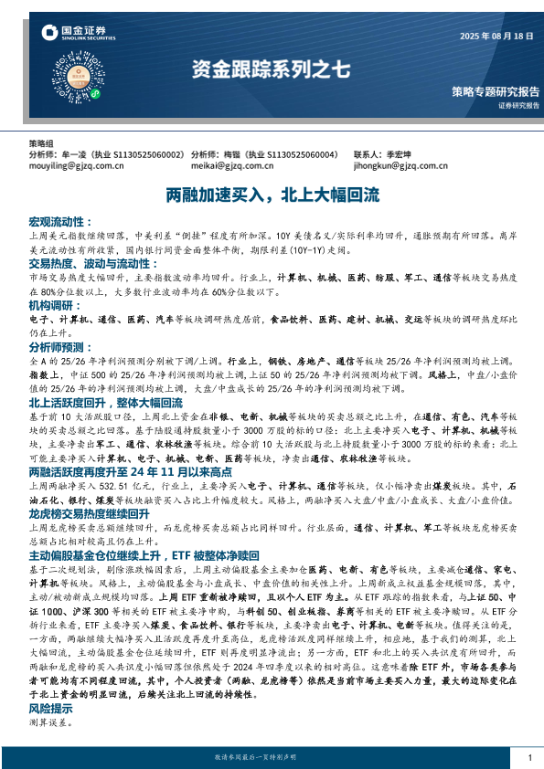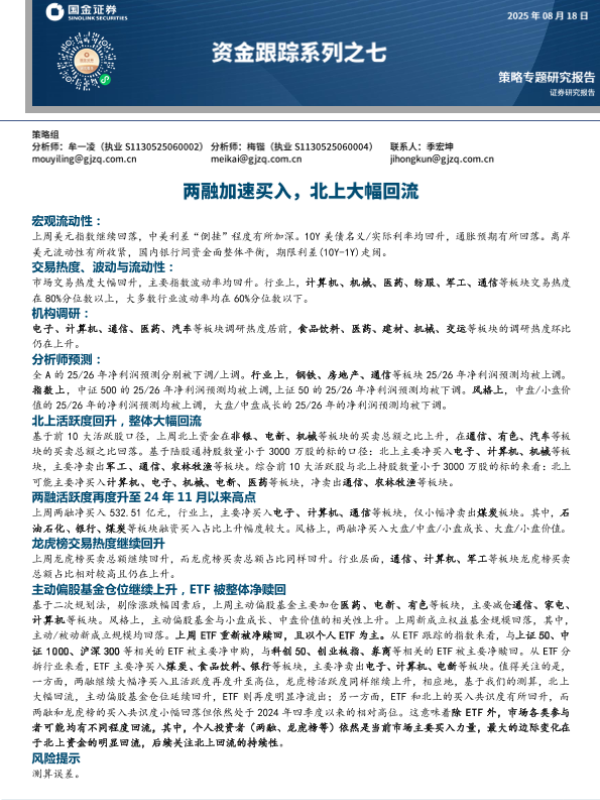 【国金证券】【202508】资金跟踪系列之七:两融加速买入,北上大幅回流-250818-国金证券-32页.pdf-32页