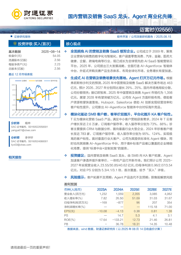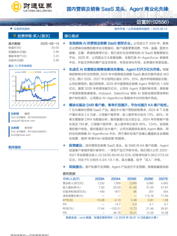 【财通证券】【202508】迈富时(02556)国内营销及销售 SaaS龙头,Agent商业化先锋-25页