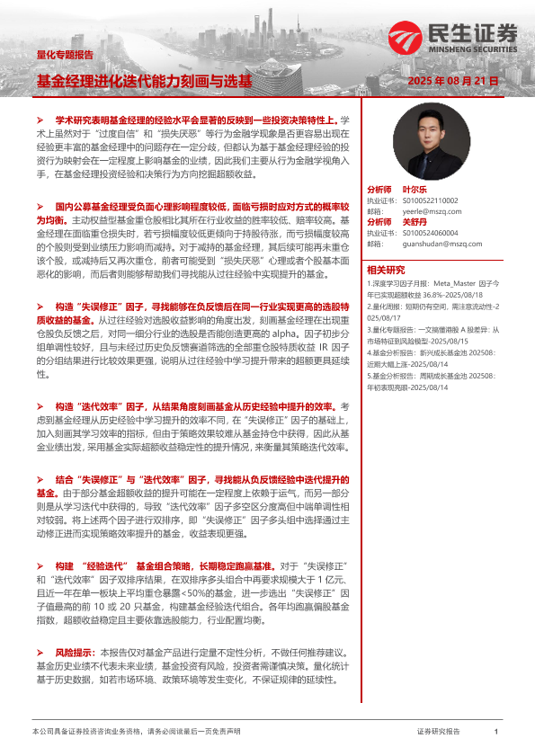 【民生证券】【202508】量化专题报告:基金经理进化迭代能力刻画与选基-17页