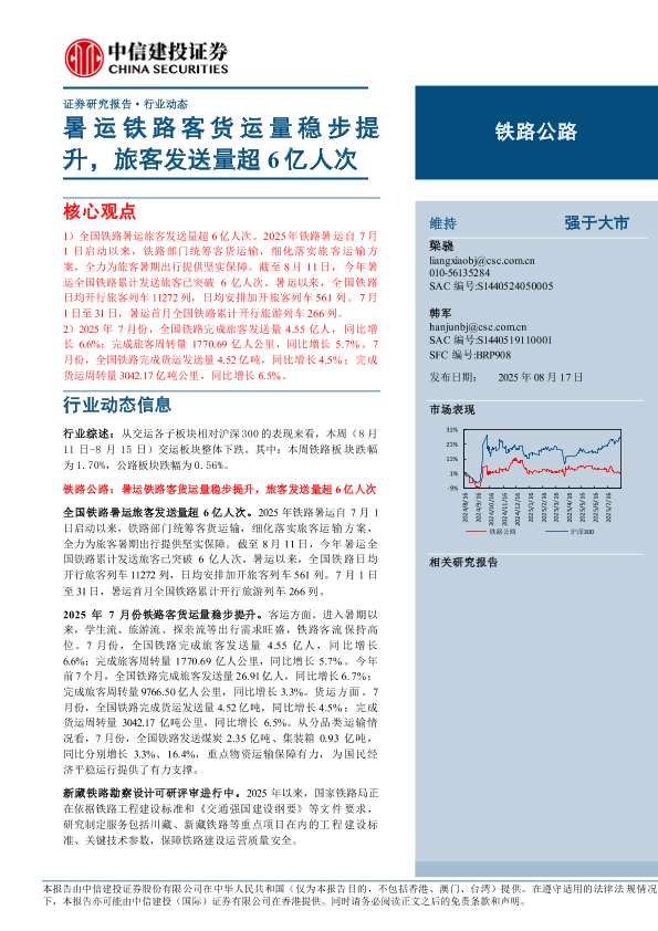 【中信建投证券】【202508】铁路公路行业动态:暑运铁路客货运量稳步提升,旅客发送量超6亿人次-11页