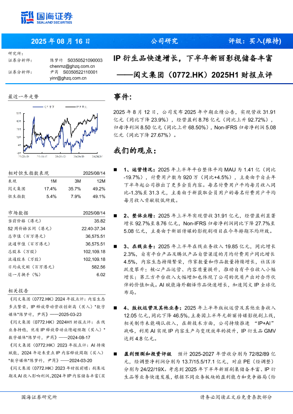 【国海证券】【202508】IP衍生品快速增长,下半年新丽影视储备丰富——阅文集团(0772.HK)2025H1财报点评-11页