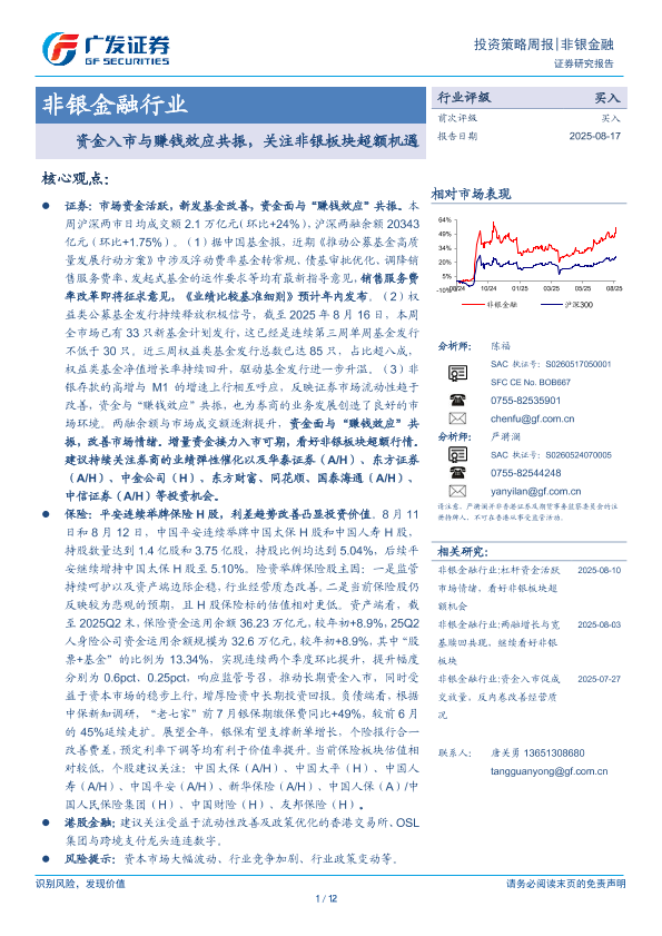 【广发证券】【202508】非银金融行业:资金入市与赚钱效应共振,关注非银板块超额机遇-12页