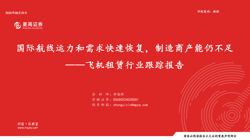 【麦高证券】【202508】飞机租赁行业跟踪报告-25页