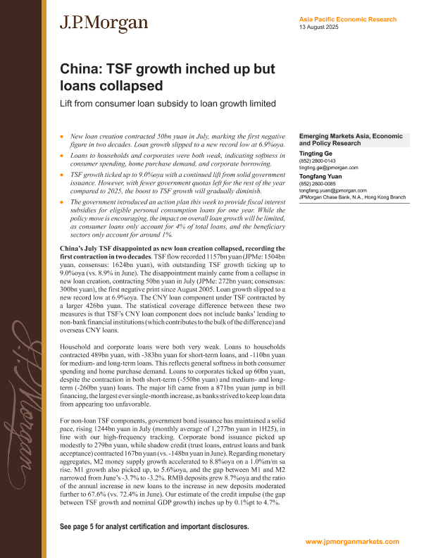 【JPMorgan Chase Bank&N.A.&Hong Kong Branch】【202508】China TSF growth inched up but loans collapsed-9页