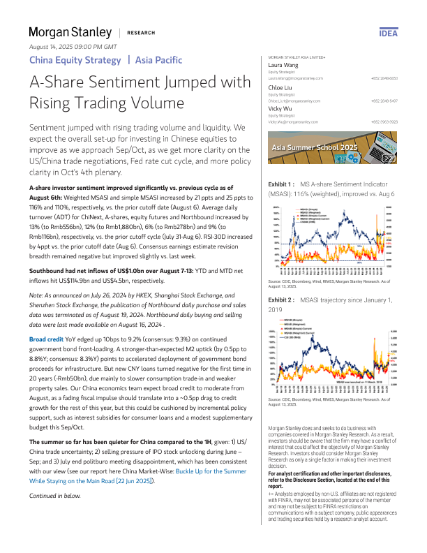 【Morgan Stanley】【202508】China Equity Strategy A-Share Sentiment Jumped with Rising Trading Volume-11页