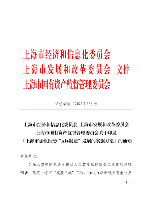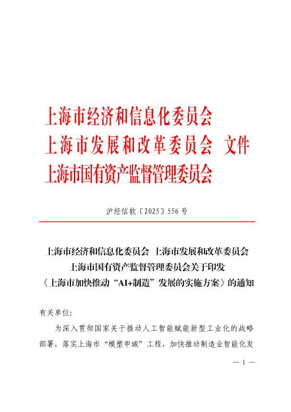 【上海市经济和信息化委员会&上海市发展和改革委员会&上海市国有资产监督管理委员会】【202508】《上海市加快推动“AI+制造”发展的实施方案》的通知-14页