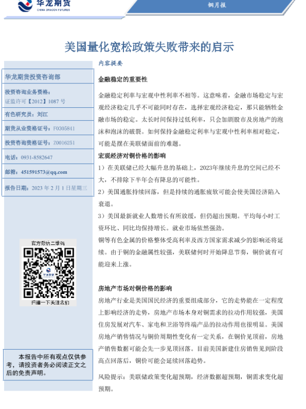 【华龙期货】【20230201】铜月报:美国量化宽松政策失败带来的启示-18页