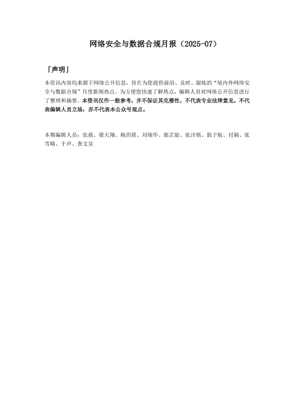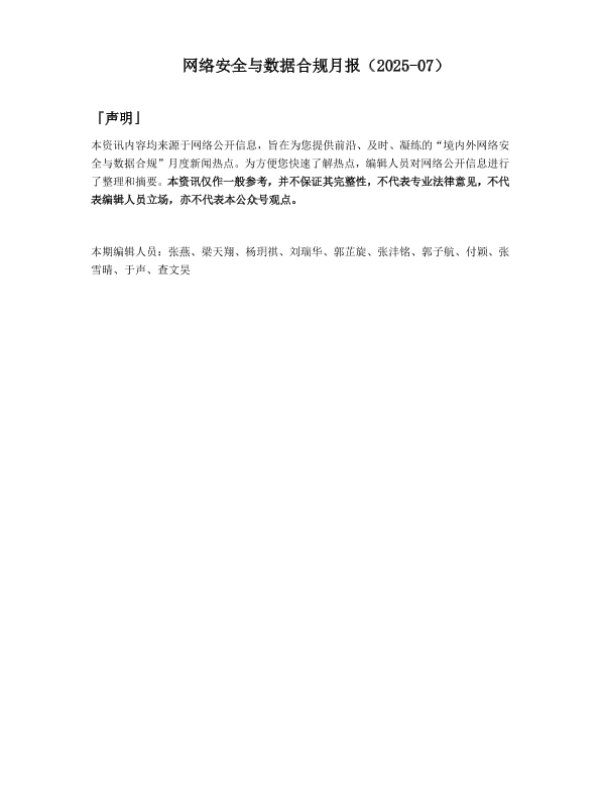 【竞天公诚】【202507】网络安全与数据合规月报(2025-07)-20页