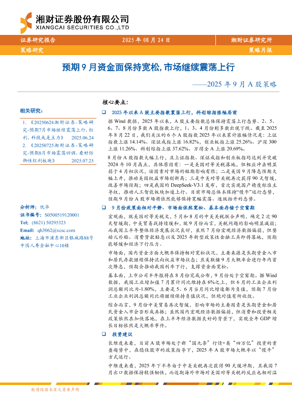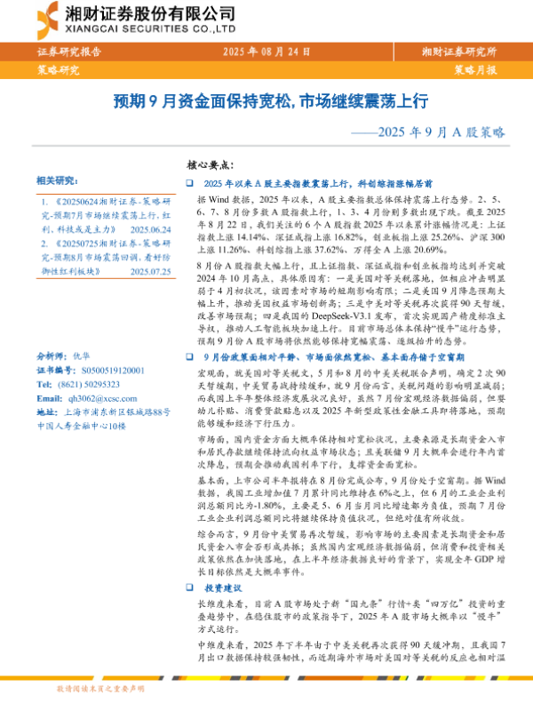 【湘财证券】【202508】2025年9月A股策略:预期9月资金面保持宽松,市场继续震荡上行-10页