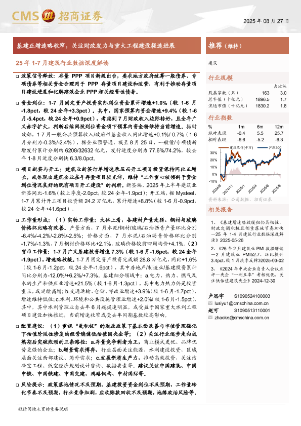 【海通证券】【202508】25年1-7月建筑行业数据深度解读:基建正增速略收窄,关注财政发力与重大工程建设提速进展-21页