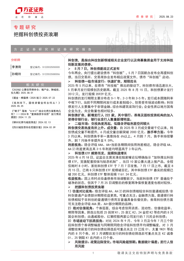 【方正证券】【202508】把握科创债投资浪潮-21页