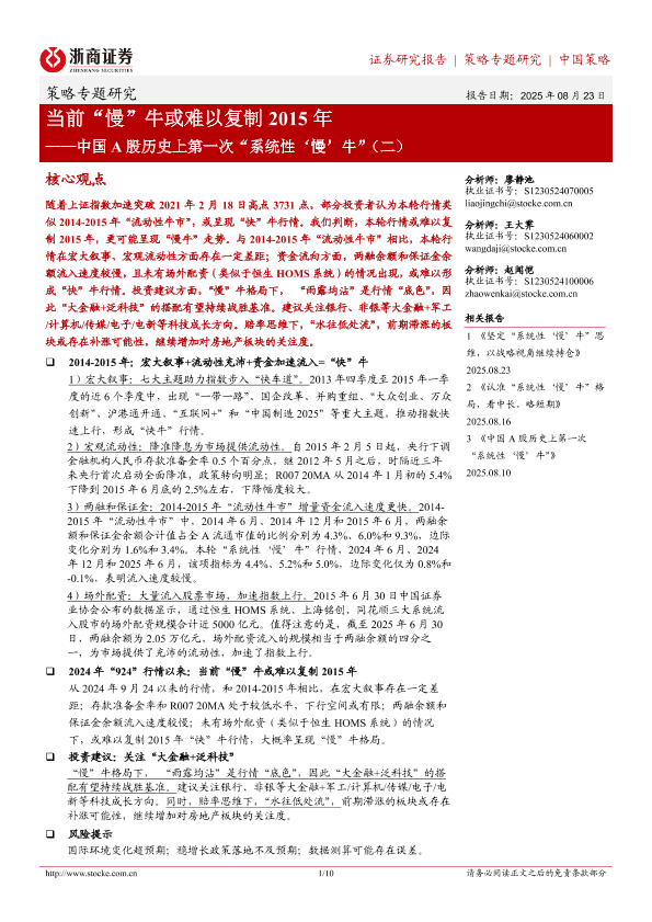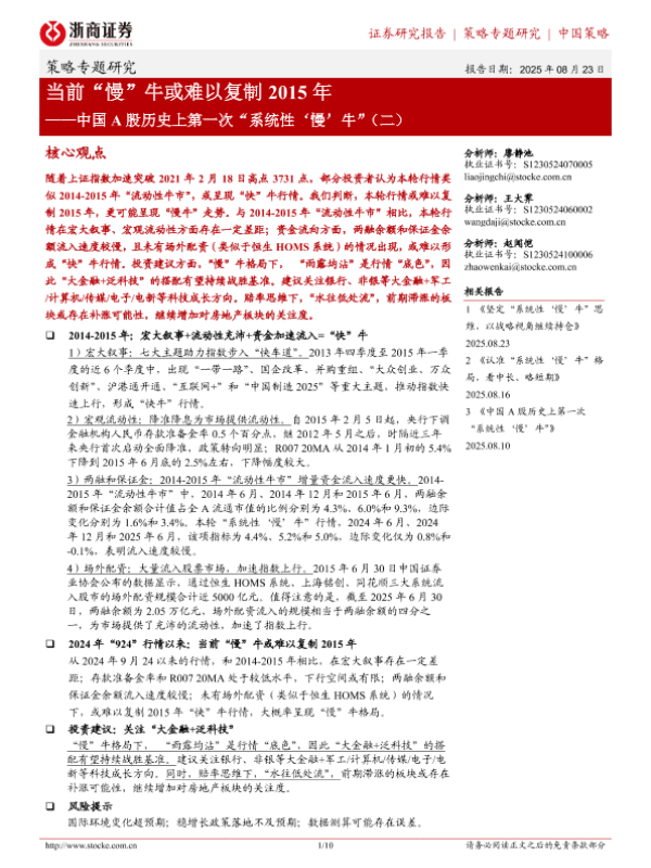 【浙商证券】【202508】中国A股历史上第一次“系统性‘慢’牛”(二):当前“慢”牛或难以复制2015年-10页