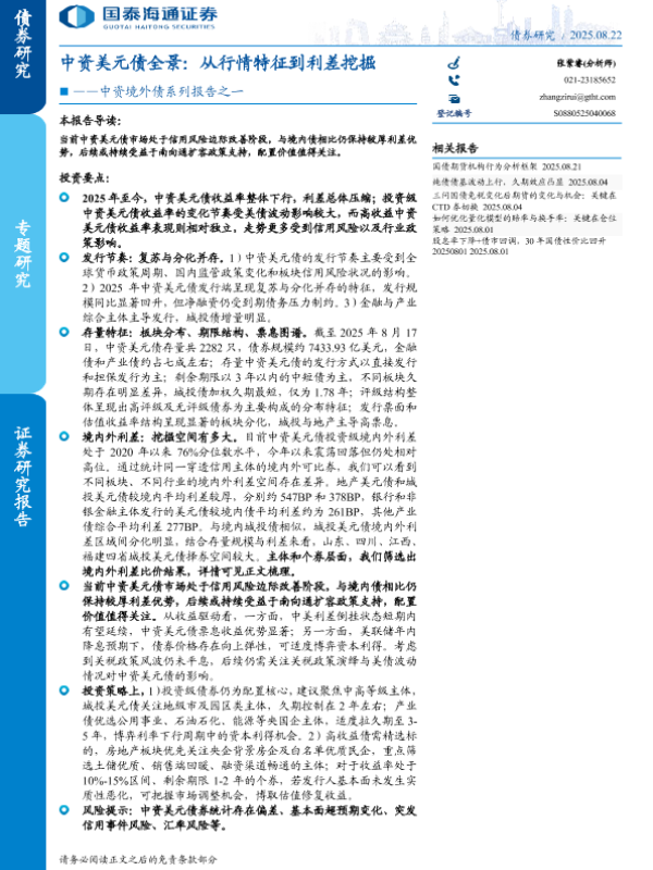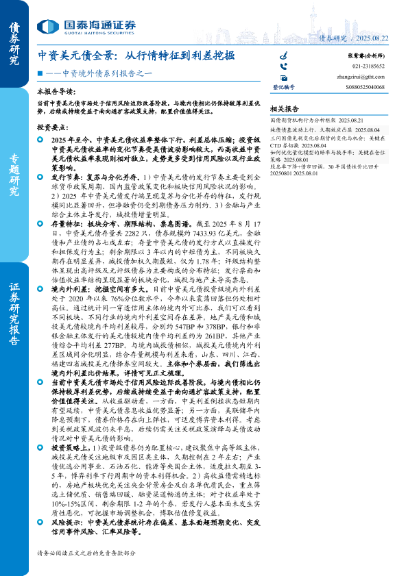 【国泰海通证券】【202508】中资美元债全景:从行情特征到利差挖掘-11页