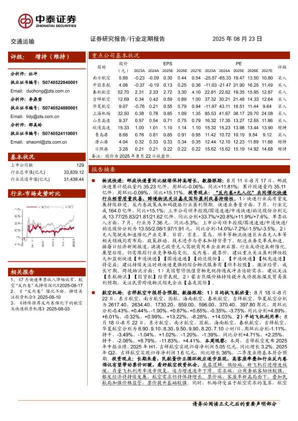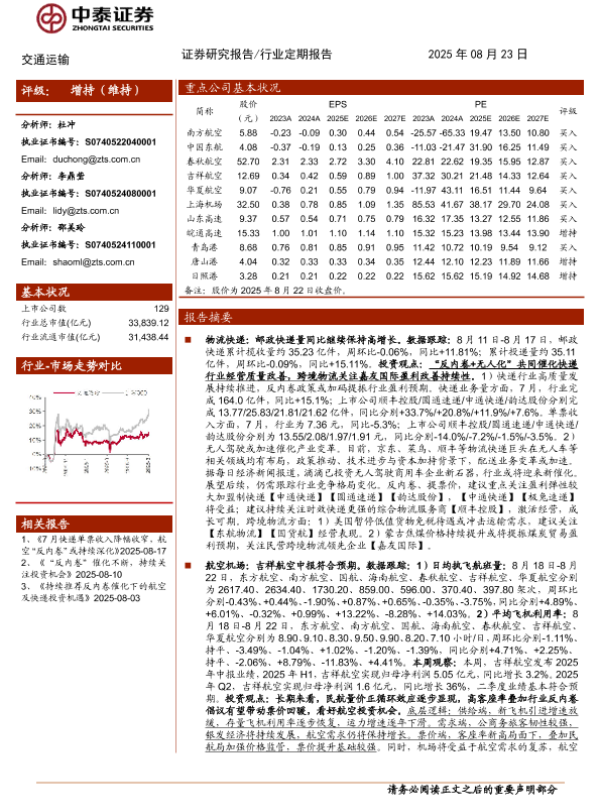 中泰证券 交通运输仓储邮政 2025年 PDF 4.21 MB