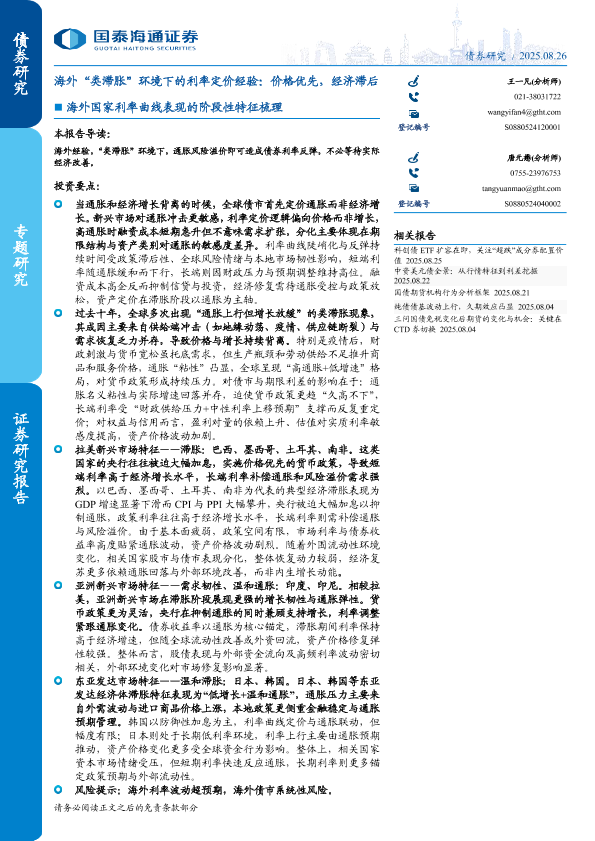 【国泰海通证券】【202508】海外“类滞胀”环境下的利率定价经验:价格优先,经济滞后-10页